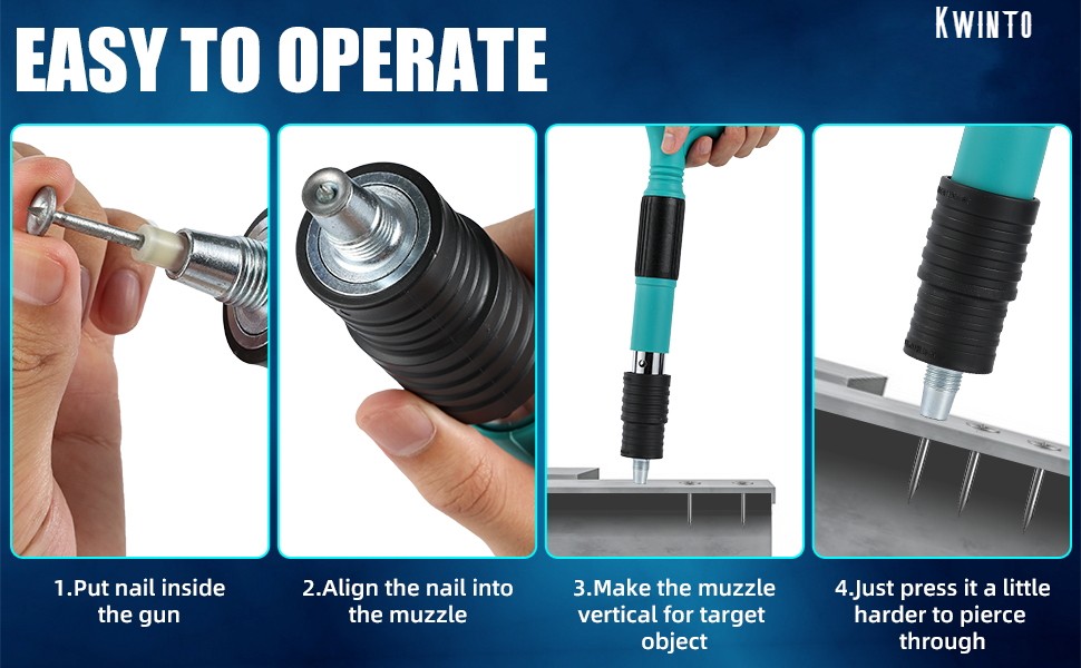 2. Compact and convenient design. Light weight, small size, one-handed operation, comes with a plastic box for easy carrying of the machine and nails.