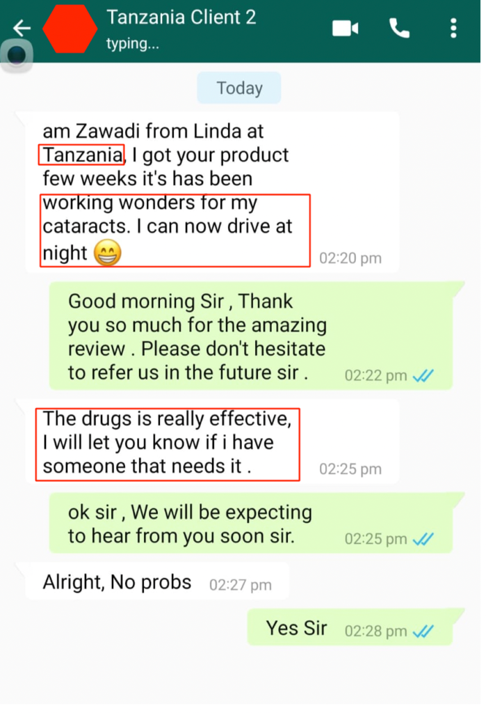 Here are testimonials Across different Countries from people that used our “Eye Treatment Tea”
